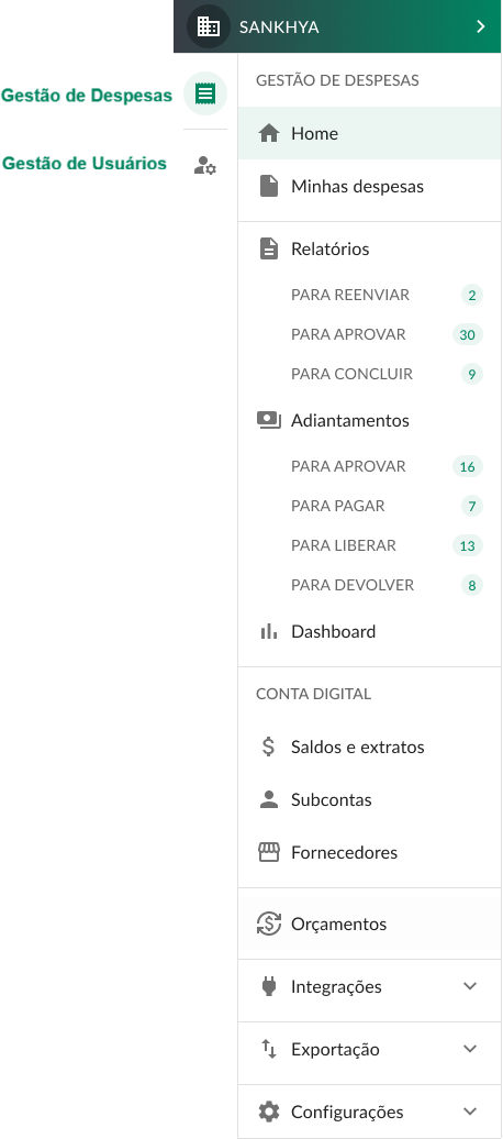 Para deixar a navegação mais organizada e intuitiva, o menu lateral do Sankhya Despesas ganhou uma nova estrutura!